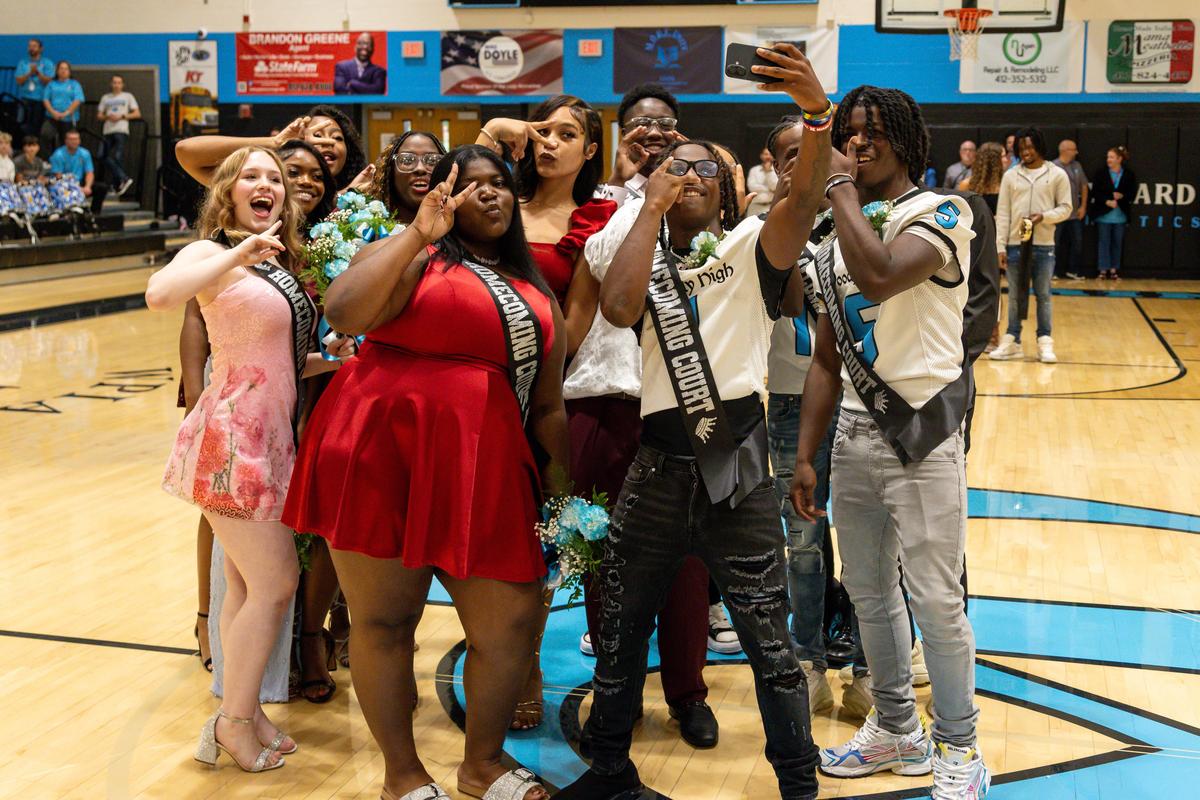 This year's court includes Sonny Davis (first runner-up for Homecoming King), Nijaya Estes (first runner-up for Homecoming Queen), Andree Carrington (second runner-up for Homecoming King), Caitlin Burke (second runner-up for Homecoming Queen), Landon Akins, Kevin Agbodoh, Leo Alfieri, Kerwin Byrd, Calise Cowans-Rini, Aseelah Daniels Robinson, Olivia Davidson, and Jasira Lee.