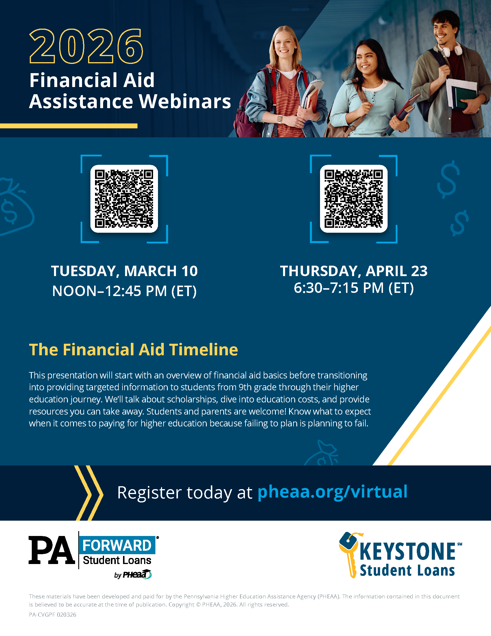 PHEAA is offering a pair of virtual webinars to help families and students navigate the complex financial aid process.